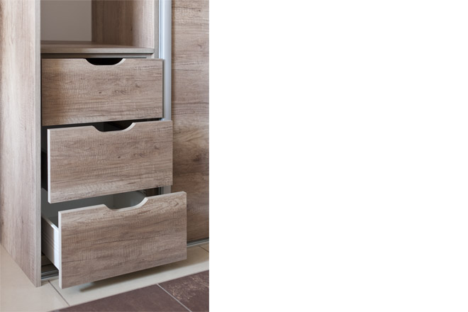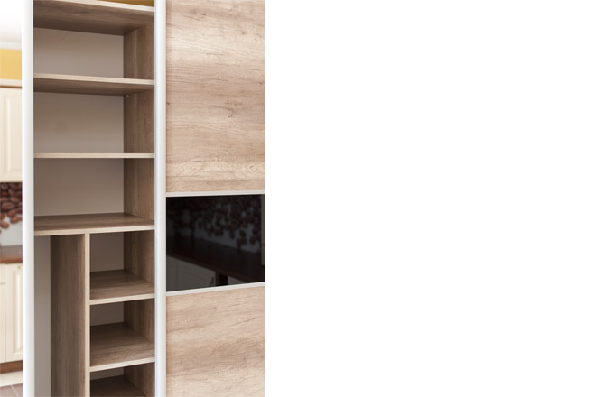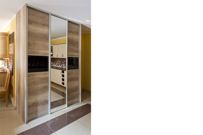 szafa wykonywana pod wymiar z różnymi rozwiązaniami wewnątrz oraz z różnym podziałem frontów przesuwnych