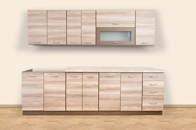 Zestaw w cenie promocyjnej w wymienionym wymiarze, kolorze blatu, uchwytach - kolorystyka frontów i korpusów dowolna.